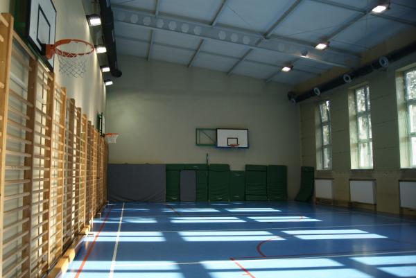 Sala gimnastyczna o wymiarach 36 m x 18 m. Z sali korzystają uczniowie szkoły w czasie lekcji wychowania fizycznego oraz zajęć pozalekcyjnych (siatkówka, koszykówka). Szkoła udostępnia obiekt Fundacji Talent, która prowadzi zajęcia z tenisa stołowego. Z tego względu na dzień dzisiejszy nie ma możliwości korzystania z sali przez inne podmioty.